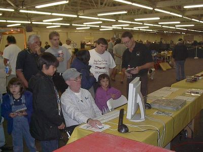 This is a picture of Tony Hillman, from Auran, and myself demoing Trainz at the Great American Train Show (GATS) at the Cow Palace just south of San Francisco. Tony is on the right and I am the good looking guy (wearing the cap).