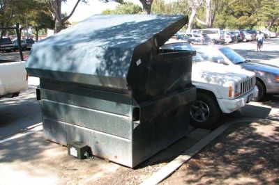 One hour into the 3 hour hunt 3 teams were threatening to quit so I started giving clues and asked Andy DD to take a bearing from his home in the hills on the south peninsula figuring it would be line of sight but his bearing also indicated Alameda or Oakland So I announced it was well south of downtown Oakland where two teams were and north of the Hayward / San Mateo Bridge. Andy then reconsidered and said it might be in San Leandro. I said nothing. Two teams did then quit. During the next hour I gave a few more clues but I don't think they were heard. The two teams that were in Oakland , Ron and Jim, Were apparently working together by then and proceded south on 580 where they were again able to pick up the signal ( a reflection from the peninsula? ) and found me about 2 hours and 20 minutes into the hunt. They had been in cell phone contact with Chris who was by then on the peninsula and when they told him I was in San Leandro he called it a day. I turned the fox off 2.5 hours into the hunt. The parking lot was full when Jim and Ron arrived so I had them park in front ( east side ) of the dumpster. When I told them the box was perhaps twelve feet away on the other side of the dumpster I got the impression they found it hard to believe that it was that close. Pizza was the next consideration and I had figured we would go to Mountain Mikes on Marina near Doolittle but we all decided two skip it and headed home. Jim's milage was lowest at 60.2 so I suppose he is responsible for next month's third Saturday hunt. Ron had 61.8 . Jim took some pictures and I expect they will be on the www.thunt.org web site "soon" along with a map and a brief explanation how he finally found the fox.