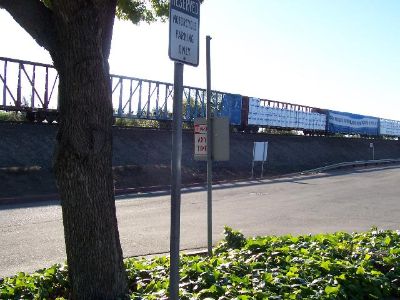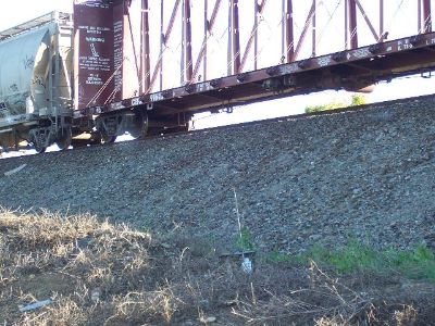 The transmitter was the ussual ammo box type, seen here, putting out 2.5 watts. That is the former Western Pacific, now Union Pacific, tracks where it rises to cross over the Southern Pacific, now Union Pacific, tracks.