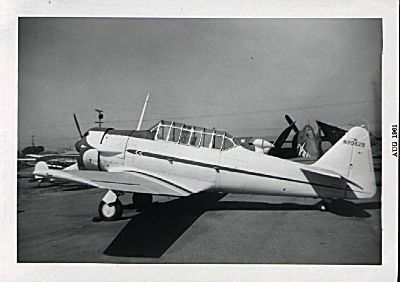 North American AT-6 or Noorduyn AT-16 Texan or Navy SNJ at Hayward Airport, Hayward California, in 1961. Note F6F Hellcat in background.