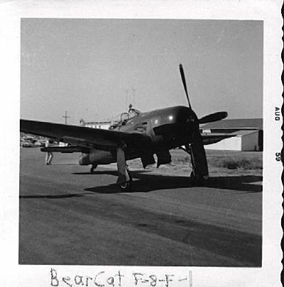 This Grumman F8F Bearcat, owned by Grumman, made an unscheduled landing at Hayward in 1959 when it developed an oil leak.