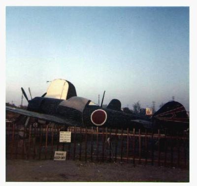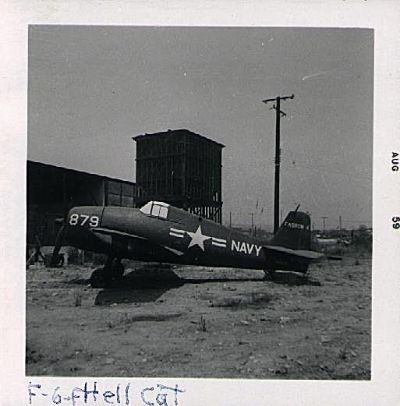 Grumman F6F Hellcat. A friend of mine, David Blackman took this and other pictures on vacation to "The Air Museum" in Southern California in 58 or 59 and allowed me to make copies. This aircraft was apparently "new" as it was still in the factory crate when purchased and then assembled in the late fifties.