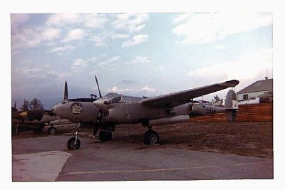 Lockheed P-38 still in the colors of the South American country it was acquired from, at "The Air Museum" in 66?.