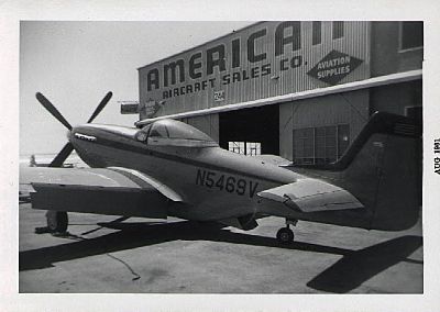P-51D, Hayward Airport. I got my first job at American Aircraft Sales in '62, detailing aircraft to finance my Senior Ball and keep gas in my '52 Ford Crestline Victoria. The boss, Mike Couches, had his own P-51. I think this is it but it might belong to the boss of the company next door. They would fly together.