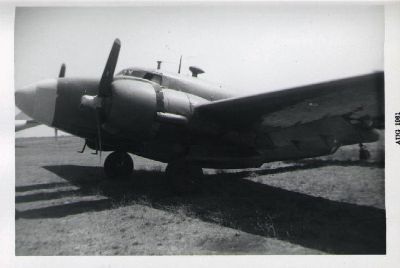 Beech AT-11 "Kansas" or Navy SNB-1 at Hayward Airport in 1959. Note B-25 in the background.
