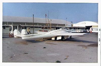 De Havilland Vampire. I took this picture in 66(?) at the same airport east of Los Angeles that the 12 Oclock High TV series was filmed at.